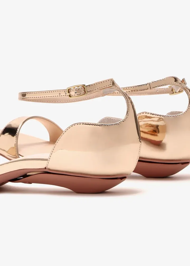 rose gold, metallic sandals with a convertible or retractable heel mechanism