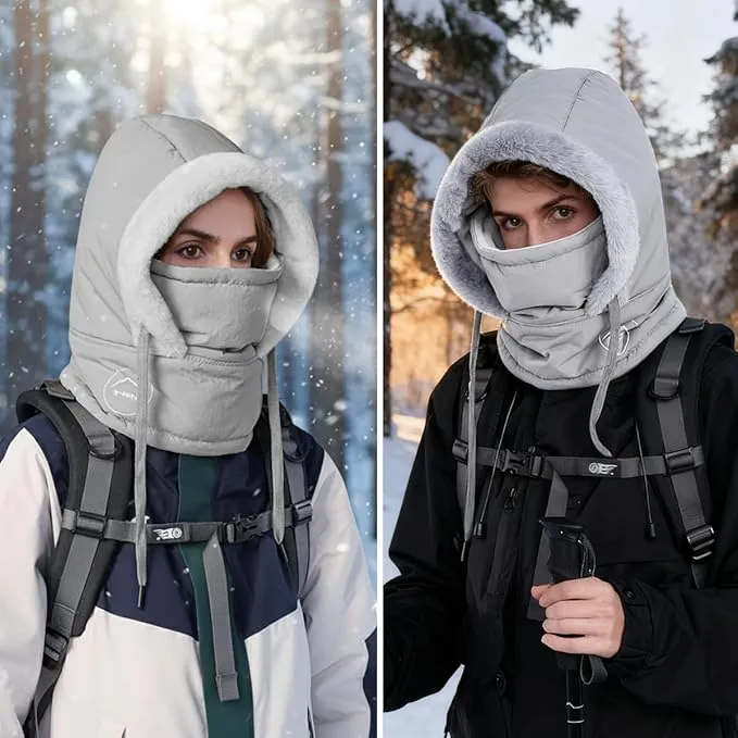Winter Cap Fashion Trooper Riding Hat for Women Ushanka Plush Lined Warm Hat Face Cover Neck Gaiter, Drawstring Adjustable Design, Outdoor Warm Hood