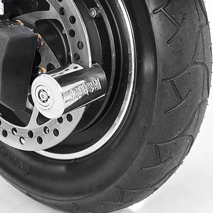 Built for real-world conditions, this lock features a hardened internal locking mechanism that resists tampering, drilling, and forced entry. The precision-cut locking pin fits securely into the brake disc slot, ensuring a snug hold without damaging the disc. The smooth outer surface not only adds a premium look but also helps reduce exposure to rust, dust, and moisture. Whether parked at home, in an office lot, or on the street, this lock provides dependable peace of mind.